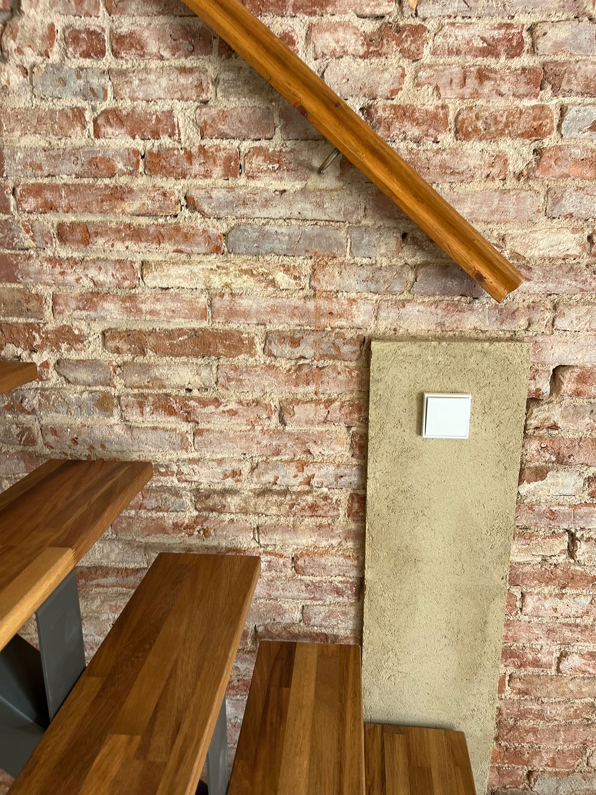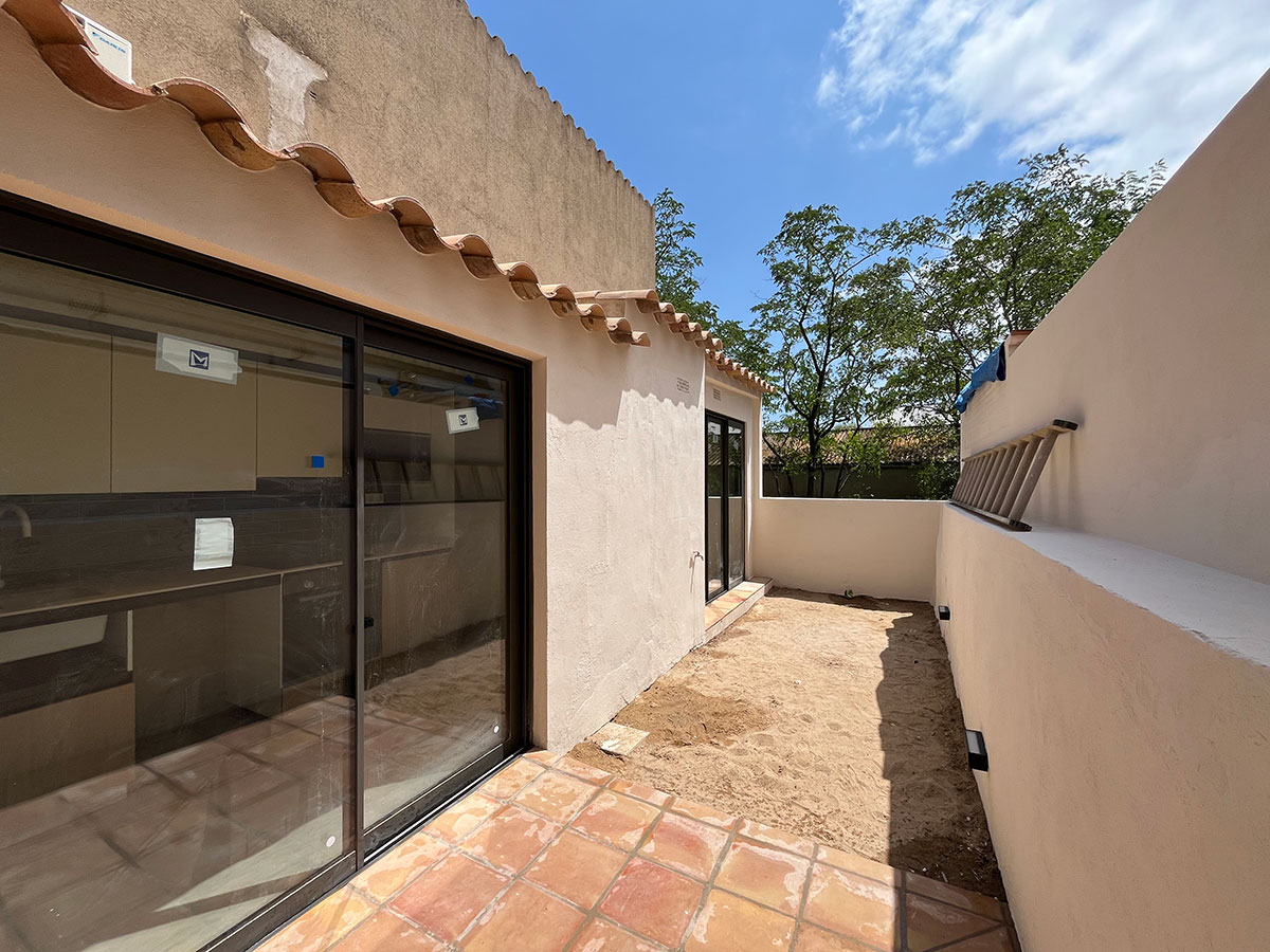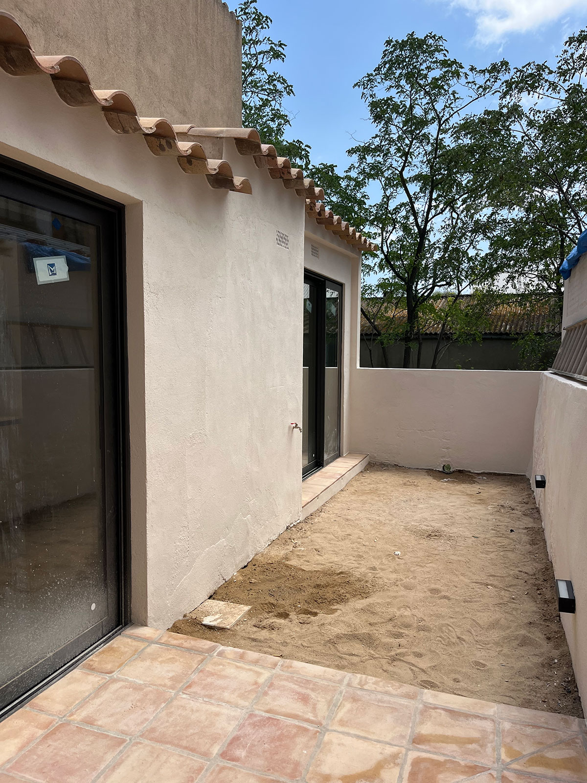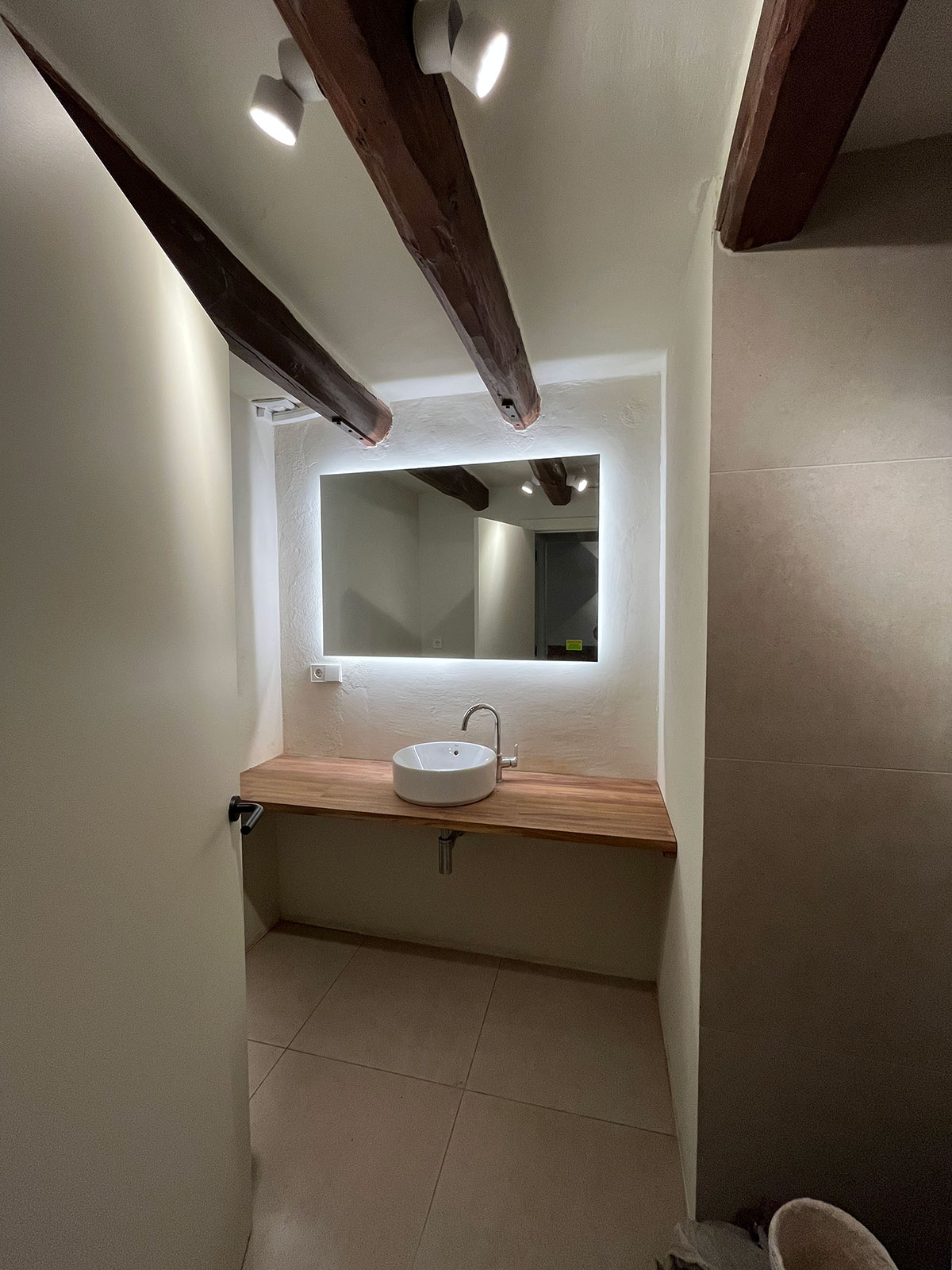 Des de la sala accedim amb una escala metàl·lica a la zona de l’altell i en un laterla de la sala a la cuina. També dona accés amb una gran balconera el pati amb orientació sur de la casa.